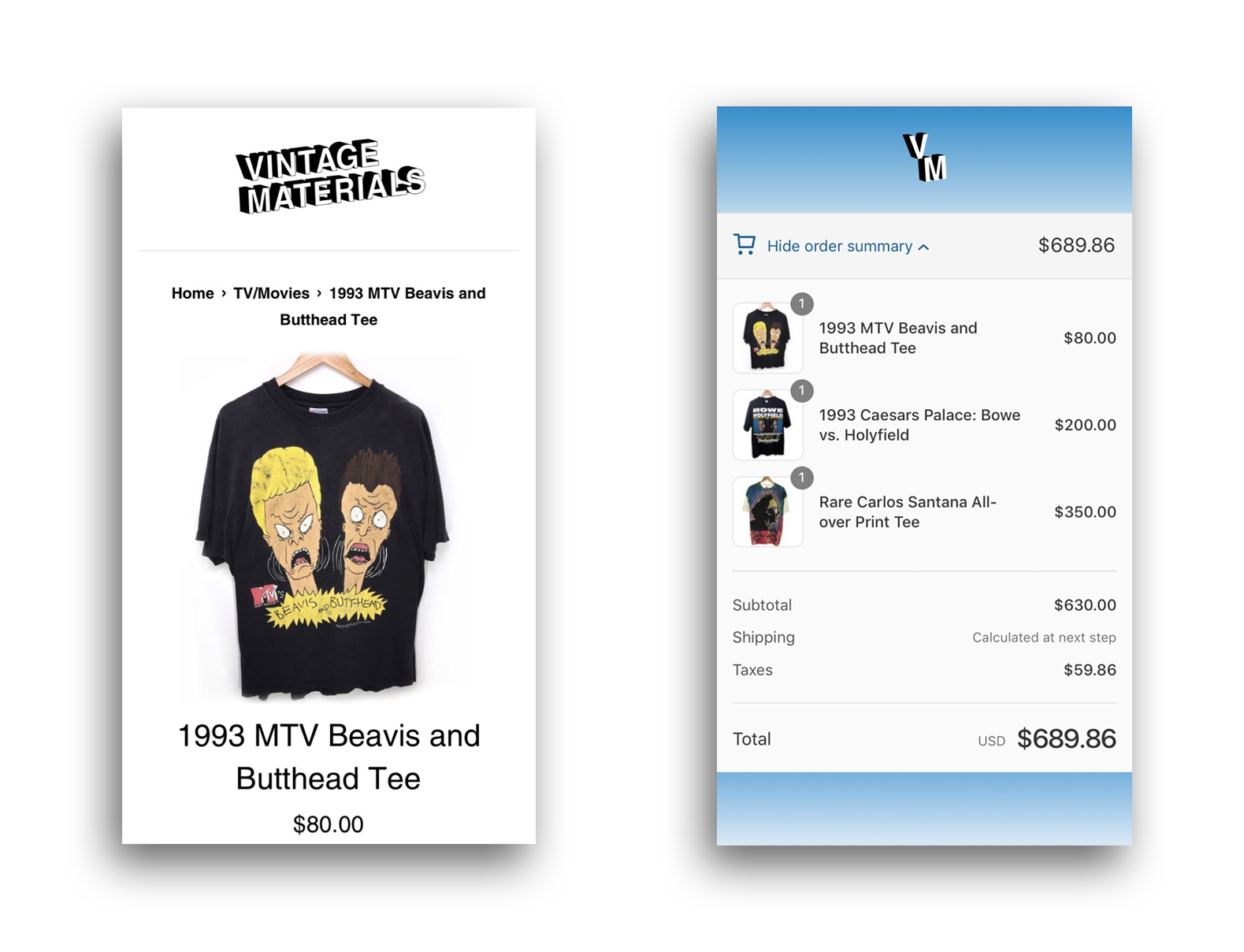 Brand assets and website for Vintage Materials, an upscale vintage clothing reseller.